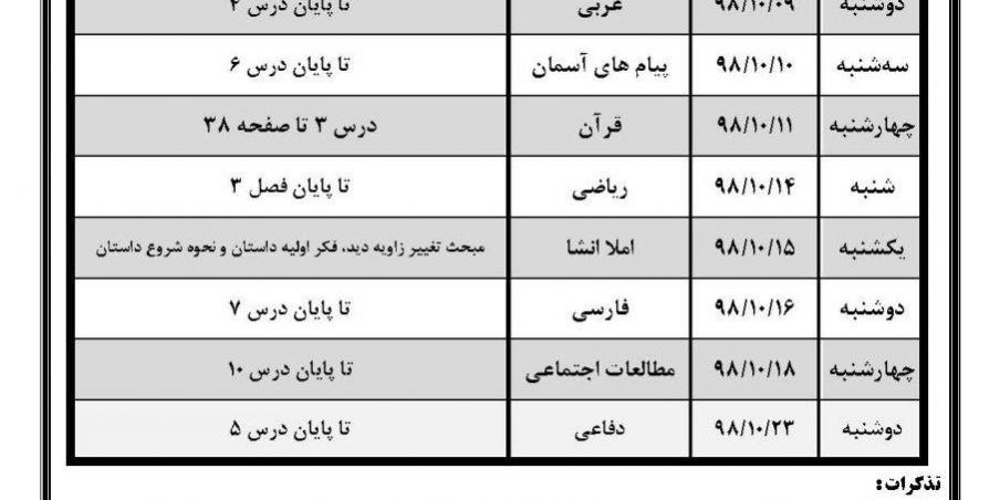 دسامبر262019پایه نهم با توجه به تعطیلات مدرسه در روز های گذشته برنامه ی امتحانی جدید به پیوست جهت اقدامات لازم قرار داده شده است. Category: پایه نهمBy administrator2019/12/26Leave a comment Author: administrator Post navigationPreviousPrevious post:برنامه و بودجه بندی جدید آزمون های ترم اول پایه هشتمNextNext post:🔹ویژه کلیه پایهها🔹Related Postsکاربرگ تابستانی ریاضی – پایه نهم2019/08/19کاربرگ تابستانی علوم – پایه نهم2019/08/19دوره مطالعاتي ويژه آمادگي آزمون های نوبت اول2019/01/03نکات مهم ویژه همسفران اردوي يزد2019/01/03